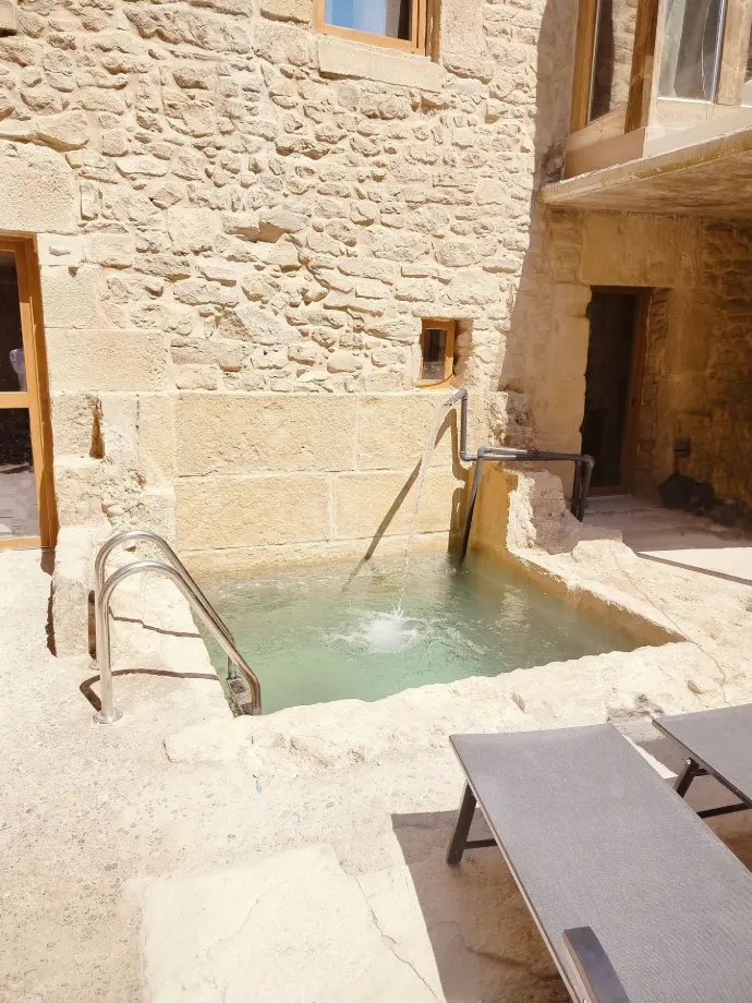 Carácter rústico con muros de piedra y techos de vigas vistas, que combina historia y confort.