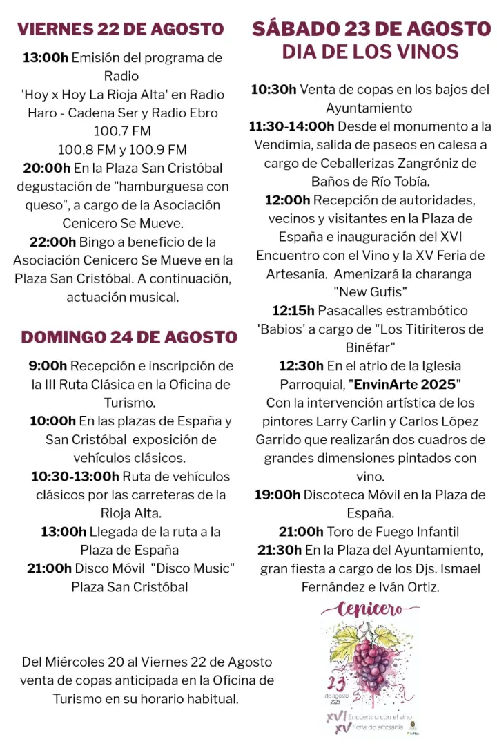 Llega un año más el Encuentro con el Vino de Cenicero con las bodegas de Cenicero ofreciéndonos a degustar sus vinos.