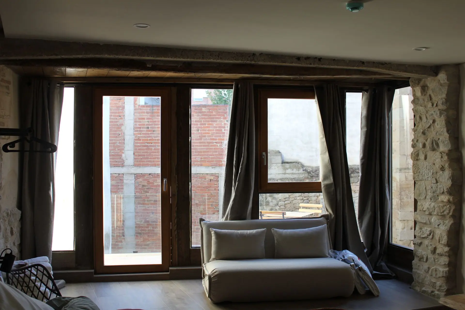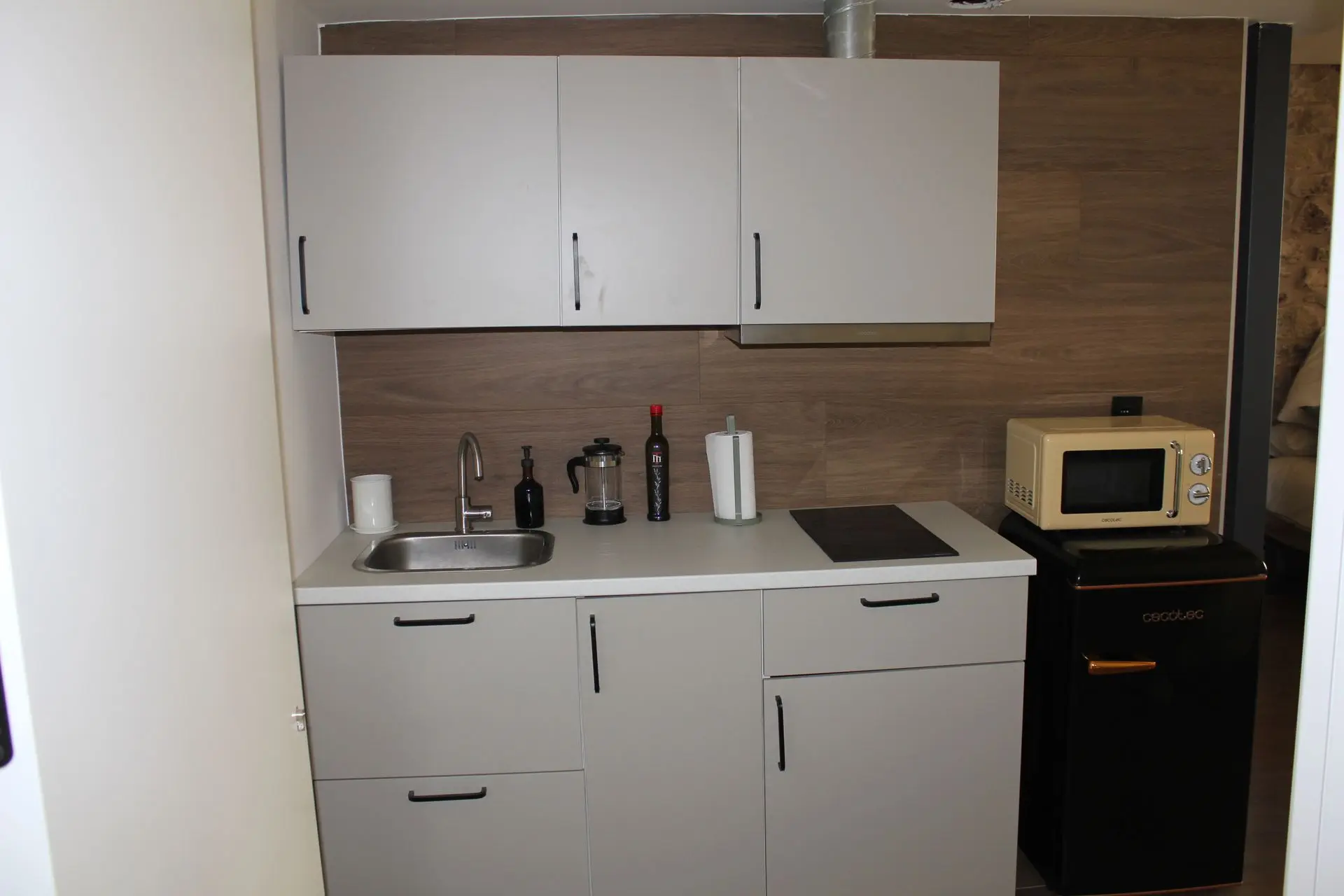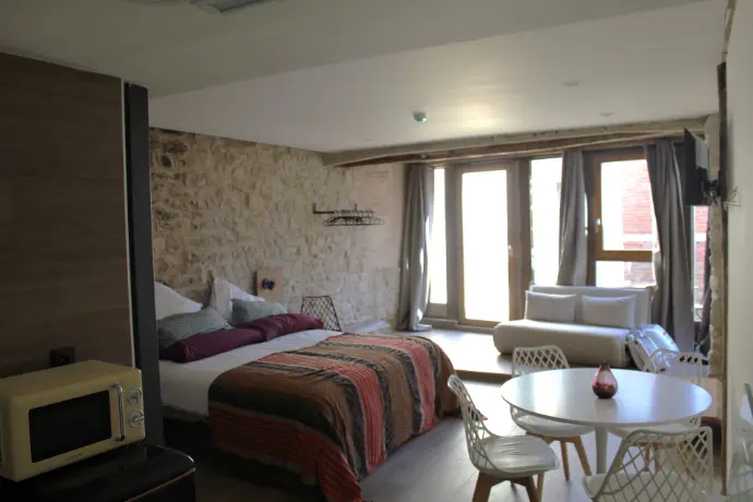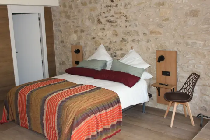 El Apartamento Rivarrey es un refugio cálido y luminoso donde el pasado y el presente se abrazan. Sus muros de piedra de mampostería conservan la esencia de la arquitectura tradicional riojana, mientras que el mobiliario contemporáneo, los tonos suaves y los detalles cuidados aportan comodidad y estilo.